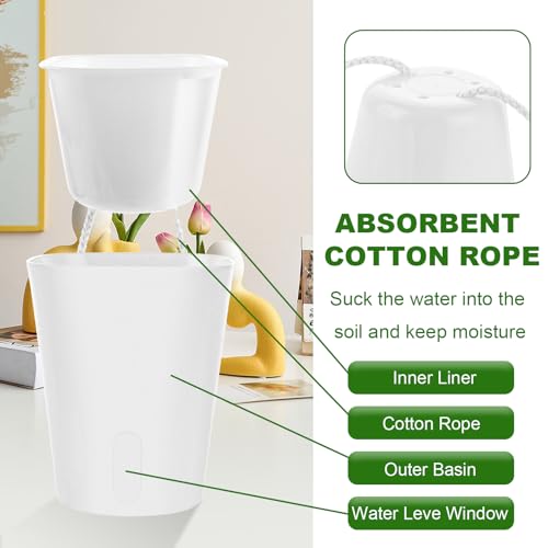 – 【HOCHWERTIGES MATERIAL】Das Selbstbewässernde Blumentöpfe ist aus hochwertigem ABS-Kunststoff hergestellt, der sowohl stark als auch leicht, langlebig und geruchsneutral ist. Das selbstbewässernde Pflanzgefäß hat ein sauberes Aussehen und kann gut mit einer Vielzahl von Pflanzen für jedes Haus arbeiten, perfekt für Sukkulenten, Kräuter und Kakteen, kleine Pflanzen und Blumen.