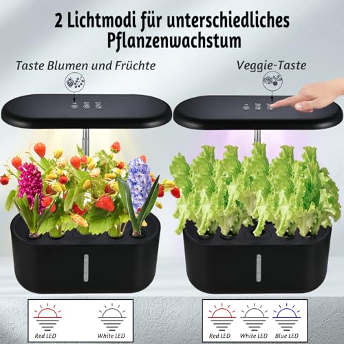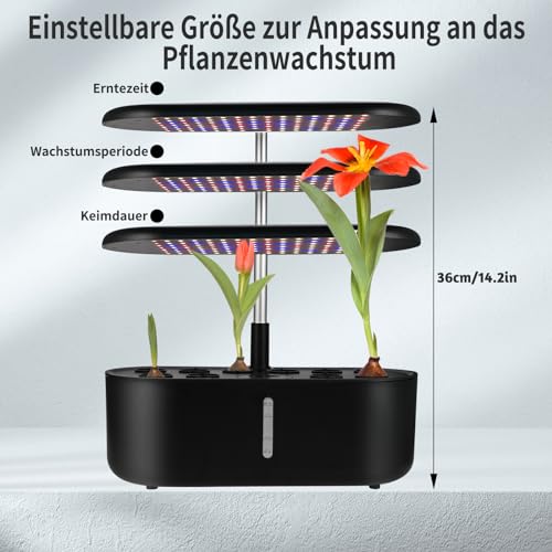 2 Anbaumodi:Unser fortschrittliches Hydroponiksystem bietet zwei verschiedene Anbaumodi, den Gemüsemodus und den Blumen-/Obstmodus.24W Vollspektrum-LED-Lichter imitieren effektiv die Sonnenstrahlen mit 104 Lichtkugeln, so dass Ihre Pflanzen reichlich und präzises Licht für eine leistungsstarke Photosynthese erhalten, egal wie das Wetter ist, so dass die Pflanzen bis zu fünfmal schneller wachsen als herkömmliche Beleuchtung • 10 Pflanzlöcher: Unser Pflanztisch verfügt über 10 Pflanzlöcher, die eine ideale Umgebung für das Gedeihen der Pflanzen schaffen • 3.6L WASSERTANK MIT GROSSER KAPAZITÄT: Hydroponikmaschine ist mit einem Wassertank mit großer Kapazität ausgestattet, so dass kein häufiges Nachfüllen von Wasser erforderlich ist. Der vergrößerte Wassereinfüllstutzen kann jederzeit bequem mit Wasser oder Nährlösung befüllt werden. Dank des transparenten Wasserstandsfensters können Sie immer sehen, wie viel Wasser noch im Tank ist und rechtzeitig Wasser nachfüllen • Automatische Wasserzirkulation: Das Smart Gardens Growing System verfügt über eine automatische Wasserzirkulation mit einer ultraleisen Pumpe, die alle 30 Minuten das Wasser umwälzt, um den Sauerstoffgehalt zu erhöhen, Wurzelfäule zu verhindern und die Nährstoffe effizient an die Wurzeln zu verteilen, damit die Pflanzen schneller wachsen als in der Erde • Ideales Geschenk: Cieex Hydroponik-Set enthält alle Komponenten, die für das Pflanzenwachstum benötigt werden, kann auf der Arbeitsplatte, Fensterbank oder Tisch platziert werden, einfach und leicht zu bedienen, können Sie leicht Ihre eigenen Indoor-Garten zu schaffen. Dies ist ein großes Geschenk Wahl für Anfänger, Familie Freunde oder Pflanzenliebhaber