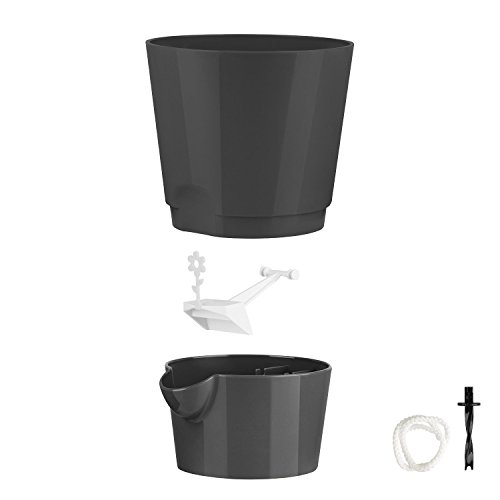 Wochenlang frische Kräuter: Moderner Kräutertopf in Granit zur langen Aufbewahrung von frischem Basilikum, Dill, Minze und Co., Passend für handelsübliche Kräutertöpfe dank 13 cm Durchmesser • Kein Übergießen oder Austrocknen – Cleveres Bewässerungssystem: Selbstständige Regulation des Wasserbedarfs der Kräuter durch Bewässerungsdocht, Blume als Wasserstandsanzeiger • Einfache Anwendung: Einfädeln des befeuchteten Dochtes von unten in die Erde, Kräuter mit Topf direkt in Übertopf und Wasserbehälter stellen, Bewässerung von außen durch Schnaupe • Robuster Kunststoff: UV-beständig für die Fensterbank • Lieferumfang: 1 Emsa Kräutertopf Fresh Herbs, Durchmesser 13 cm, Wasserreservoir: 0.5 Liter, Farbe: Granit