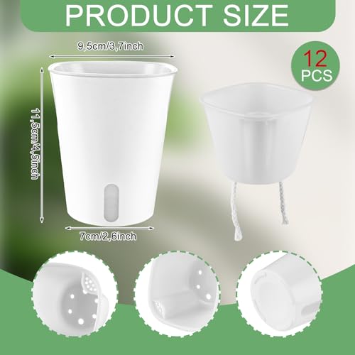 AKOLAFE 12 Stück Selbstbewässerungstopf mit Wasserstandsanzeiger 9,5CM Self Watering Pot Kräutertopf mit Bewässerungssystem Küche Blumentopf Selbstbewässernd Selbstwässernder Blumentopf für InnenAußen