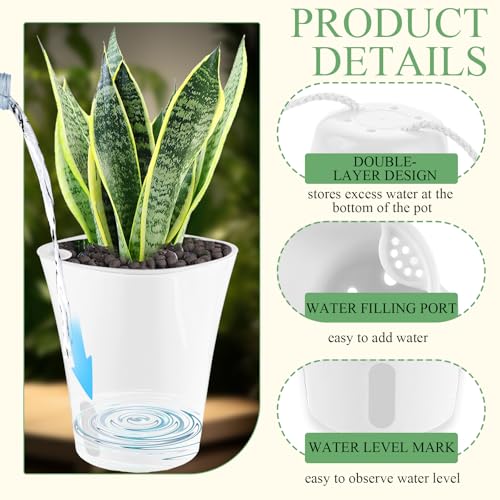 – 【Automatisches Bewässerungssystem】Die innere und äußere Doppelschichtstruktur von Selbstbewässerungstopf mit Wasserstandsanzeiger kann die Pflanzenwurzeln von der Wasserspeicherschicht trennen. Überschüssiges Wasser wird am Boden des Außentopfs gespeichert und durch den Docht nach oben geleitet, um die Pflanzen kontinuierlich mit Feuchtigkeit zu versorgen. So können Sie bequem und effizient Grünpflanzen wissenschaftlich kultivieren.
