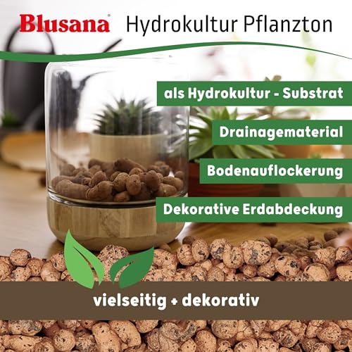 VIELSEITIG EINSETZBAR: Ideal als Pflanzsubstrat für Hydrokultur, Drainagematerial, zur Bodenauflockerung und als dekorative Abdeckung – perfekt für Zimmerpflanzen, Kräuter und Urban Gardening Projekte • DRINNEN & DRAUSSEN: für Indoor-Pflanzen und Kräutergärten in der Küche. Für den Aussenbereich: Balkon, Terrasse. Unterstützt gesundes Wachstum von Zierpflanzen, Gemüse und Obst • OPTIMALE BELÜFTUNG & DRAINAGE: Die leicht aufgebrochene Oberfläche der Ton-Kugeln sorgt für eine ausgezeichnete Wurzelbelüftung, verhindert Staunässe, ideal für empfindliche Pflanzen • QUALITÄT AUS DEUTSCHLAND: Nachhaltig – unser Blusana Pflanzton ist ein umweltfreundliches Naturprodukt, anorganisch, rein mineralisch, biologisch, ph-neutral – Made in Germany • OPTIK: die Blähtonkugeln sind Tonfarben rot-braun. Sie eignen sich hervorragend für dekorative Akzente in Blumentöpfen, Körnung 8/16 mm – erhältlich in 5l, 10l, 25l und 50l