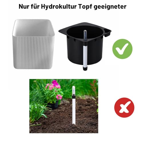 – Dieser Gießanzeiger ist speziell für Hydrokultur Töpfe entwickelt und muss in Verbindung mit bestimmten Hydrokultur Töpfen verwendet werden. Er zeigt den Wasserstand präzise an und hilft Ihnen, den richtigen Zeitpunkt zum Gießen einfach zu bestimmen. Bitte beachten Sie, dass er nicht direkt in Erde verwendet werden kann.