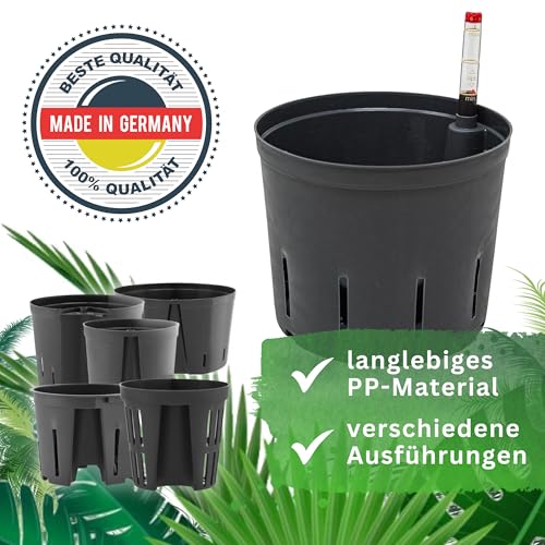 PRÄZISE BEWÄSSERUNG: Kulturgefäß mit Wasserstandsanzeiger – Hydrokultur Pflanzeinsatz Selbstbewässerung für optimale Pflanzenpflege und gesundes Wachstum Ihrer Pflanzen • GESUNDE WURZELN: die spezielle Topfform des Substrat Behälters fördert effektive Wurzelbelüftung und verbessert die Nährstoffaufnahme für kräftige Pflanzen • LANGLEBIGES MATERIAL: Hochwertiges, robustes Plastik-Material für dauerhafte Nutzung in Hydrokultur-Systemen, geeignet für Balkon-, Terrassen- und Zimmerpflanzen • VIELSEITIG EINSETZBAR: Größen zur Auswahl von 5 bis 32 cm Durchmesser / 5 bis 28 cm Höhe – abgestimmt auf gängige Hydrokultur-Systeme – auch für Erde und Mischkultur geeignet • EINFACHE HANDHABUNG: durchdachtes Design – unkompliziertes Befüllen, Entleeren und Umpflanzen – vom Mini-Blumentopf bis zu Büro-Begrünung, Anzucht und Bepflanzung