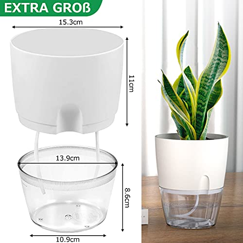 Automatisches Bewässerungssystem: Der selbstbewässernde Blumentopf für Fensterbank ist doppellagig gestaltet. Der Küche-Kräutertopf kann überschüssiges Wasser speichern und es sauber halten. Das Bewässerungsseil absorbiert Wasser und speichert es, um ein gesundes Wachstum der Pflanzen zu gewährleisten. Das Wasser wird vom Innenraum getrennt und nur durch das Bewässerungsseil absorbiert. An der Außenseite des Blumentopfes ist eine kleine Öffnung zum Nachfüllen von Wasser vorhanden. • Hohe Qualität: Der selbstbewässernde Blumentopf und der innere Korb werden aus hochwertigem Kunststoff gefertigt, der hitze- und kältebeständig ist. Die hohe Festigkeit und Zähigkeit ermöglichen eine sichere und langlebige Verwendung.Sie können auch die obere und untere Schicht trennen, um ihn zum Nachfüllen anzuheben. Das Wasser kann für 7-15 Tage behalten werden. Machen Sie sich keine Sorgen darüber, dass die Pflanze austrocknen werden, wenn Sie ein paar Tage unterwegs sind. • Wasserstandsanzeiger: Das transparente Design lässt sich der Wasserstand gut erkennen. Sie wissen stets, wie viel Wasser noch im Blumentopf verbleibt und ob Sie Wasser nachfüllen müssen, was sehr praktisch ist. • Größe und Menge: 3er-Pack, Tiefe des Kräutertopfs: 11cm, der Durchmesser der Blumentopföffnung beträgt 15,3 cm, die Gesamthöhe beträgt 18,2 cm und der Bodendurchmesser des Blumentopfs beträgt 11cm. • Anwendungssituation: Sie können drei verschiedene Gartenkräuter in die Küche stellen, sodass Sie zwischen Basilikum, Petersilie, Schnittlauch usw. wählen können. Das einzigartige moderne visuelle Design in kreisförmiger Form und die hochwertigen dekorativen Materialien gelten als die besten Dekorationen für die Küche.