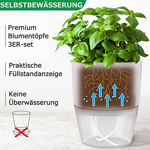 iDattel Kräutertopf Küche Set,Blumentopf Fensterbank selbstbewässernd-3er Set Kräutergarten für die Küche,18.2X 11x 15.3 cm, für frische Küchenkräuter, weiß