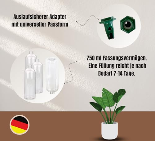 – LANGANHALTENDE BEWÄSSERUNG: Die mitgelieferte 750ml Flasche sorgt für eine konstante Feuchtigkeitsversorgung von bis zu 14 Tagen.