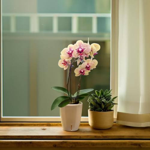 Santino Selbstbewässernder Topf mit Dochtsystem und Wasserstandsanzeige für den Innenbereich, Orchideentopf D 16.5cm. (Sand – 3,3L)