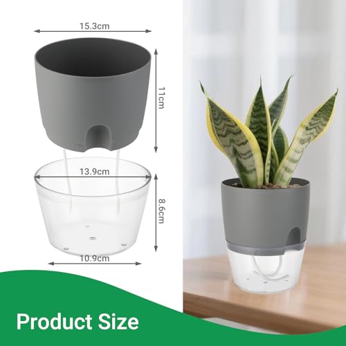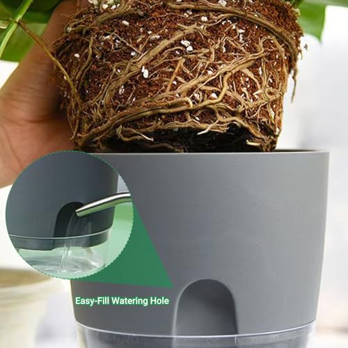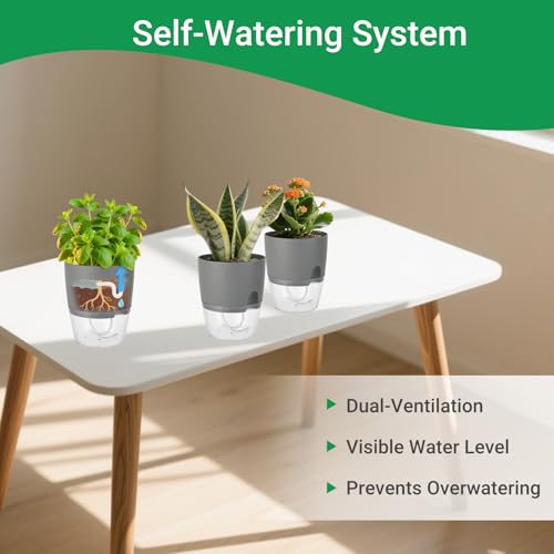Windfromort Kräutertopf Küche Set – Kräutertopf Selbstbewässernd – Küche Balkon Set, Kunststoff Pflanztopf mit Bewässerungssystem für Frische Küchenkräuter Fensterbank Schlafzimmer(Grau)