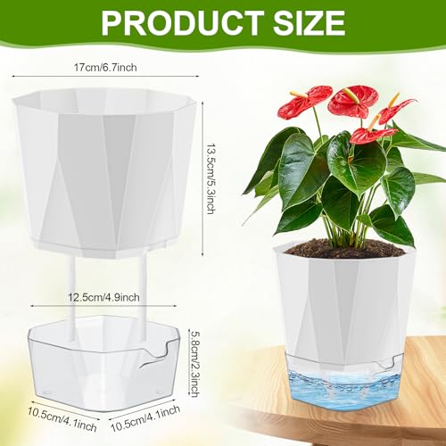 Yimomoyi 6er Set Kräutertöpfe Küche Selbstbewässernd, 17cm Blumentopf mit Bewässerungssystem, Selbstbewässerungstopf Groß mit Transparente Wasserspeicher, Basilikum Topf, Übertopf Set, Weiß