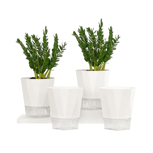 SONNHELL 4er Set Selbstbewässernde Blumentöpfe – Perfekt als Fensterbank Kräutertöpfe für die Küche, mit automatischer Wasseraufnahme für gesündere Kräuter und Pflanzen (Weiß)