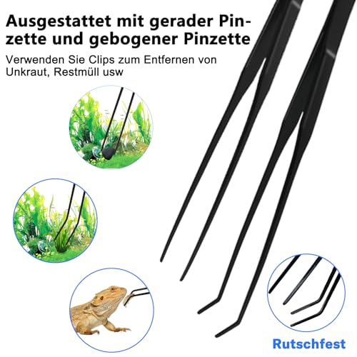 – 【Komplettset für Aquascaping & Terrarium】5 Werkzeuge inkl. Aquarium Schere (25cm gebogen/gerade), Pinzette 27cm (gebogen und gerade) und 32cm Kies-Spatel. Perfekt für Flaschengarten-Mikrolandschaften、Aquarienkies für Nano-aquarium oder Terrarium Zubehör-Anpassungen.