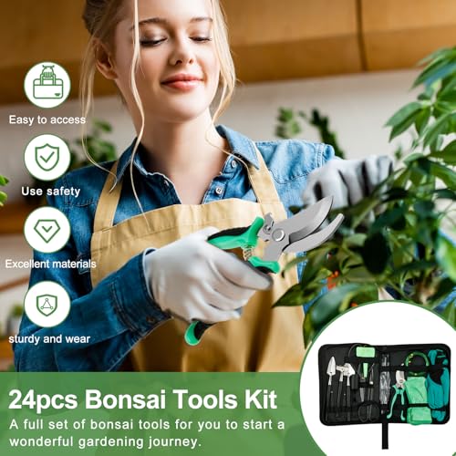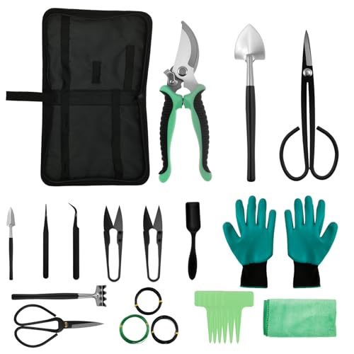 – 【24-teiliges Bonsai-Werkzeug-Set】Unser Bonsai Werkzeug Set enthält alles, was Sie benötigen: aufbewahrungstasche, schere, lange schere, mini-breitschaufel, mini-schaufel, mini-palladium, eimerschaufel, blattschneider, pinzette, handtuch, handschuhe, pflanzenetiketten, bonsai-draht. Perfekt für die Pflege von Bonsai und anderen Pflanzen. Ein Muss für jeden Gartenliebhaber!
