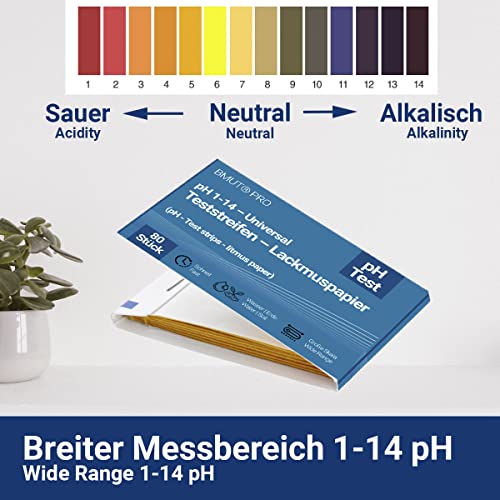 80x pH-Wert 1-14 Teststreifen, Indikator, Testpapier, Lackmuspapier für Wasser, Erde, Getränke und weiterer Substanzen (universell)