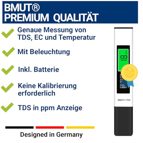 BMUT 3in1 TDS Messgerät mit EC sowie Temperatur Meter– digitaler Wasserqualität-Tester, Messbereich 0-9999ppm, für Wasser, Pflanzen, Aquarien, Trinkwasser, u.s.w.