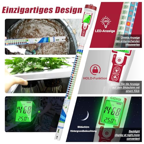 Digitaler EC Messgerät Wachsen (EC/PPM500/PPM700/CF) Hydrokultur PPM TDS Messgerät Lange Elektrode Kontrollleuchte Nährlösung Messung für Gartenbau, Hydroponik Wasser