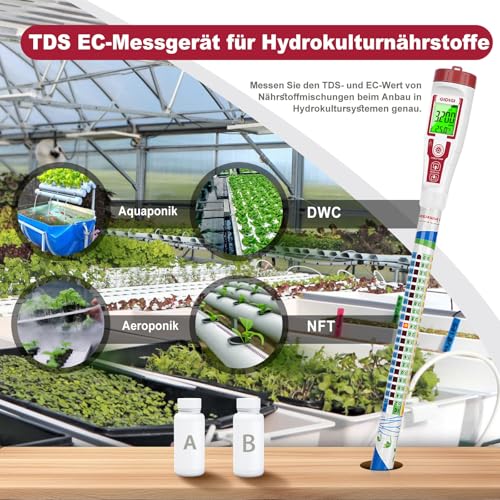 – Präziser professioneller EC-PPM-Tester für Hydrokulturen: Das PPM-Messgerät für Hydrokulturen hilft Züchtern, die EC- und TDS-Werte einer gemischten Nährflüssigkeit zu überwachen. Die Genauigkeit des EC-Messgeräts beträgt 0,01. Überprüfen Sie regelmäßig die Nährstoffwerte und passen Sie sie entsprechend an, um sicherzustellen, dass Ihre Pflanzen die richtigen Nährstoffe für optimales Wachstum erhalten.