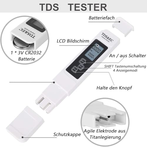 – ●【Breite Anwendung】 Ideal für den Test von Trinkwasser, Leitungswasser und destilliertes Wasser geeignet, es ist auch eine gute Werkzeug in Aquarium, Pool, Fischereiindustrie, Schwimmbad, Labor usw.