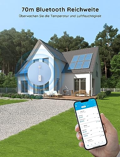 Sensor für H5151 Hub: Unser Bluetooth Hygrometer H5100 kann mit dem GoveeLife Wi-Fi Gateway H5151 verbunden werden, um als Wi-Fi Hygrometer zu fungieren und die Innen- und Außentemperatur und Luftfeuchtigkeit ohne Entfernungsbeschränkung zu überwachen. (Für die WLAN-Funktion ist das Gateway H5151 erforderlich.) • Kompaktes Design: Das Design des Thermometers und Hygrometers passt in Ihre Handfläche. Es ist klein genug, um in Topfpflanzen, Reptilienvivarien und andere kleine Räume zu passen. Bluetooth-Thermometer-Hygrometer- Reichweite bis zu 70 m. (unter barrierefreien Bedingungen) • Großer Messbereich: Die in der Schweiz hergestellten Sensoren bieten einen großen Messbereich für der Luftfeuchtigkeit und Temperatur. Der Messbereich für die Temperatur liegt zwischen +0,54℉/+-0,3℃, während der Messbereich für die Luftfeuchtigkeit zwischen 0%-99%RH für genauere Messungen liegt. • Intelligente Alarmmeldungen: Legen Sie in der GoveeHome App voreingestellte Bereiche für Ihre Temperatur und Luftfeuchtigkeit fest. Wenn die voreingestellten Werte außerhalb des Bereichs liegen, erhalten Sie eine sofortige Benachrichtigung auf Ihr Telefon. • Datenspeicherung & Export: Unser kostenloser Cloud-Service ermöglicht die Speicherung und den Export von 2-Jahres-Daten. Verfolgen Sie die aktuellen Temperatur- und Feuchteaufzeichnungen über Kurvendiagramme und verfolgen Sie Ihre historischen 2-Jahres-Daten in einer CVS-Datei.