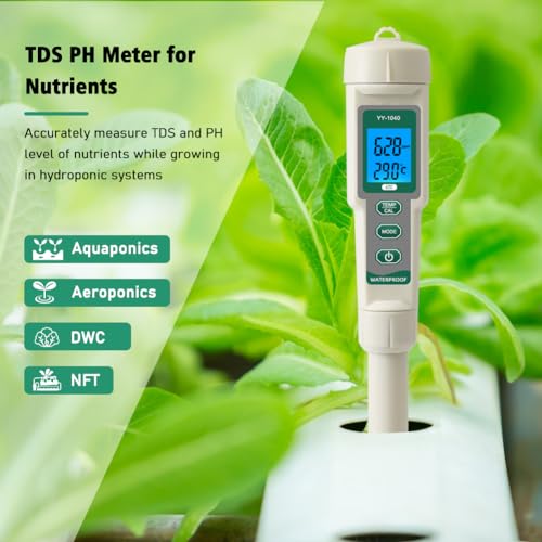 YIYEGO Digital pH Messgerät, Wasserdicht 4 in-1 EC TDS Temp pH-Tester, EC PPM TDS Messgerät für Pool, Professionelle Hydroponik pH Wert messgerät für, Indoor-Garten, Hausbrauen, Aquarium