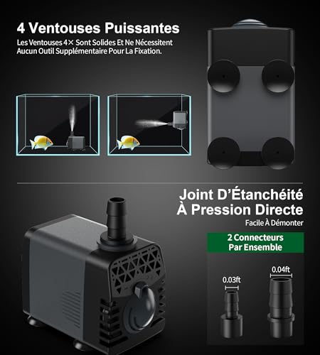 – Ultra-Quiet Aquariumpumpe: Diese Aquarium-Wasserpumpe kann geräuscharm und reibungslos laufen, was Ihnen eine ruhige Umgebung gibt, sogar mit einem in Ihrem Schlafzimmer Maximale Durchflussrate 600L/H, die Fische und andere Wasserorganismen genug Sauerstoff geben kann.