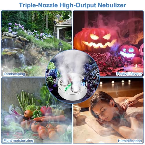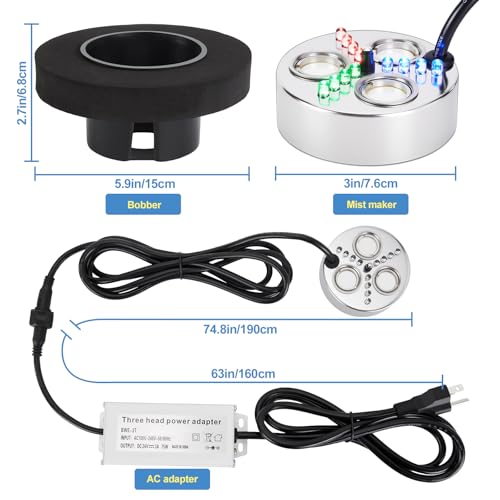 – 【All-in-One-Schwimmendes 3-Kopf-Nebelsystem】Dieses komplette Nebelmaschinen- und Luftbefeuchter-Set enthält 3 schwimmende Nebelgeneratoren mit einem Universal-Netzteil (AC100-240V). Das schwimmende Design sorgt automatisch für eine perfekte Wassertiefe von 2,7 Zoll für eine optimale Nebelproduktion.