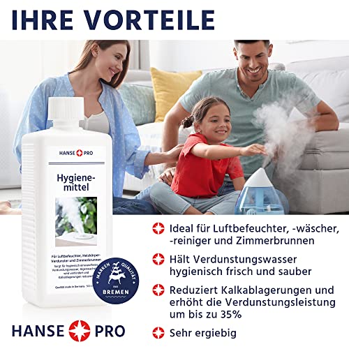 HANSE PRO Pflege-Set für Luftbefeuchter und Luftwäscher, 2 x 500 ml I Hygiene-Mittel I hält Verdunstwasser hygienisch einwandfrei I Universal-Entkalker I Flüssig-Entkalker gegen Wiederverkalkung