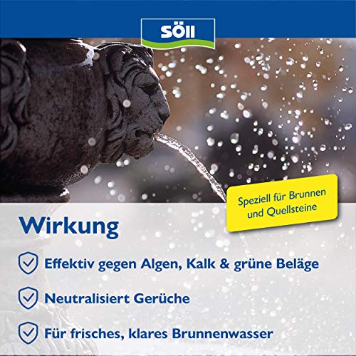 – FÜR FRISCHES BRUNNENWASSER: Der ZierbrunnenKlar Reiniger für Zierbrunnen (500 ml für 12.500 Liter) von Söll schafft algenfreies und klares Brunnenwasser für dekorative Zwecke im Innenbereich