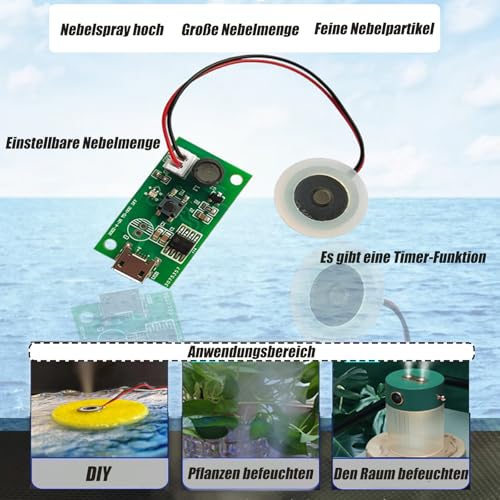 Nennspannung: DC 5v, Nennstrom: 300mA.Geräuschlos und für die ganze , spendet kontinuierliche Feuchtigkeit und entspannt Ihre Stimmung. • 【Hochwertige Materialien】 Unsere mikroporöse Zerstäubungsfolie für Ultraschallbefeuchter besteht aus hochwertigen ABS + organischen Silizium + Keramikmaterialien, die umweltfreundlich sind. Die Antioxidationssilberschicht-Schutzbeschichtung auf der Oberfläche der zerstäubten Folie hat eine lange Lebensdauer. Niedrige Ansteuerspannung, geringer Stromverbrauch, niedrige Impedanz, stabile Wellenform und hohe Umwandlungseffizienz. nebelmaschine mini • Bequem und einfach zu bedienen, platzsparend und tragbar, überall und jederzeit einsetzbar. • 【Parameter】 Unser Befeuchterzerstäuber hat eine niedrige Ansteuerspannung, einen geringen Stromverbrauch, eine niedrige Impedanz, eine stabile Wellenform und eine hohe Umwandlungseffizienz. Stanzfläche: Φ3 mm, Stahlblechdurchmesser: 19 mm, Außendurchmesser des Silikonrings: 20 mm, Resonanzfrequenz: 108 kHz (feste Frequenz), Zerstäubungsmenge: 50 ml / h. luftbefeuchter • Die Oberfläche des Zerstäubungsblatts nimmt eine oxidationsbeständige Silberschicht an, um den Beschichtungsprozess zu schützen, lange Lebensdauer. Nehmen Sie umweltfreundliche elektronische Komponenten an.