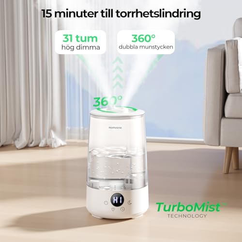 Homvana Top-Fill Luftbefeuchter für Schlafzimmer, 3,6 Liter, 360 Grad, kalter Nebel, 34 h, langlebig, leise 16 dB, kleiner Diffusor für ätherische Öle