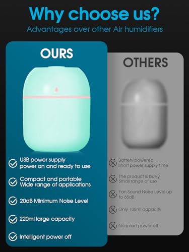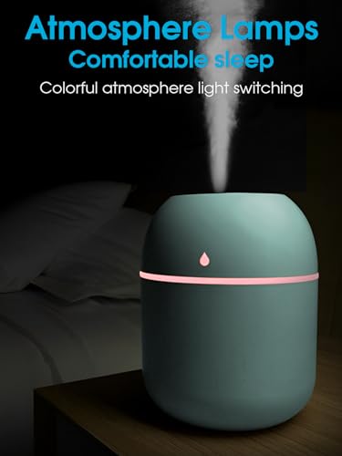 NIUAWASA Mini-Luftbefeuchter – 220 ml, Klein Tragbar USB mit Kaltnebel Desktop Diffusor mit Weichem Nachtlicht für Auto Schlafzimmer Büro (Grün)