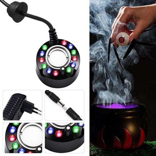 Ultraschall Vernebler,12 LED Nebelmaschine Mini,Nebelmaschine Halloween,Mini Nebelhersteller,Ultraschall Nebler Led,Mist Maker Wassernebler Fogger,Nebelgerät für Halloween Kürbis und Hexentopf,Party