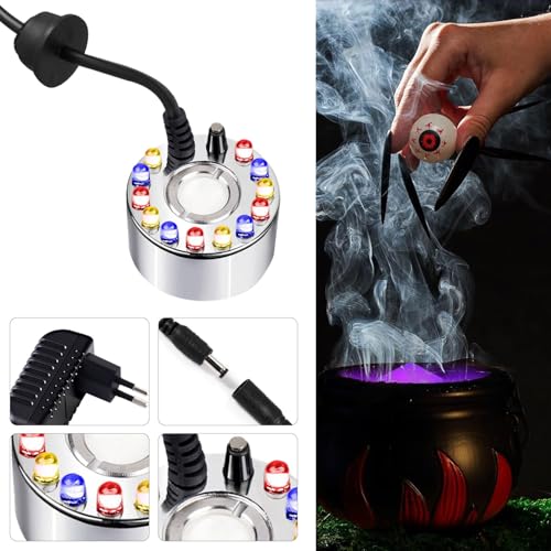 Ultraschall Vernebler,12 LED Nebelmaschine Mini,Nebelmaschine Halloween,Mini Nebelhersteller,Ultraschall Nebler Led,Mist Maker Wassernebler Fogger,Nebelgerät für Halloween Kürbis und Hexentopf,Party
