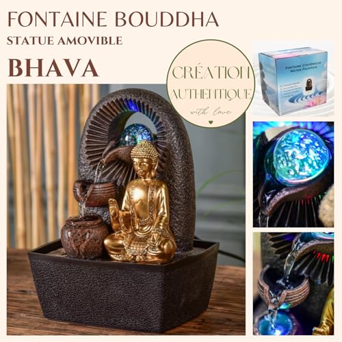 Zen’Light – Zimmerbrunnen Buddha Bhava – Zen-Dekor, Ideal für Meditation & Entspannung – Tischbrunnen mit geschlossenem Kreislauf – Farbwechselnde LED-Beleuchtung, Wasser fließt auf 3 Ebenen – H26cm