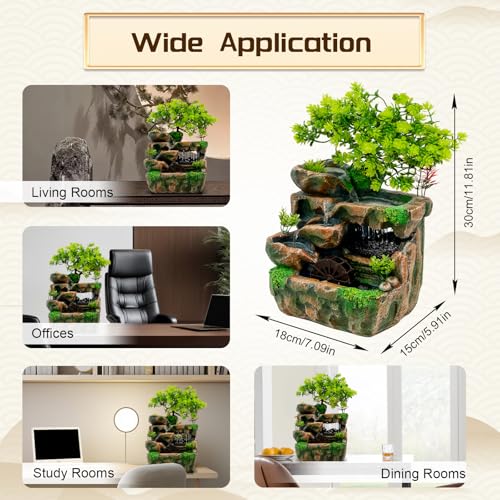 – Schöne Tischdekoration: Die simulierten Pflanzen, Wasserrad und Felsen mit klaren Texturen geben Ihnen das Gefühl, in der Natur zu sein. Das schöne Aussehen kann Farbe zu jeder Tischplatte, Wohnzimmer, Schlafzimmer oder Schreibtisch Dekor hinzufügen