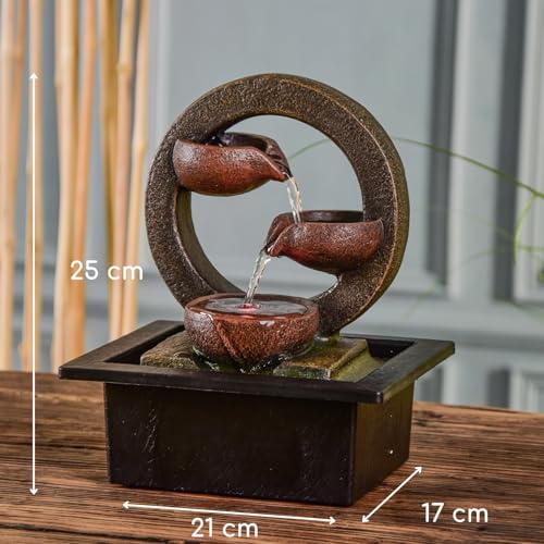 – Zen-Atmosphäre und Entspannung: Dieser Brunnen ist das Element, das Ihrer Dekoration fehlt, um eine Zen-Atmosphäre zu schaffen, die der Entspannung förderlich ist. Perfekt, um Ihr Zuhause zu einer Wellness-Blase zu machen.